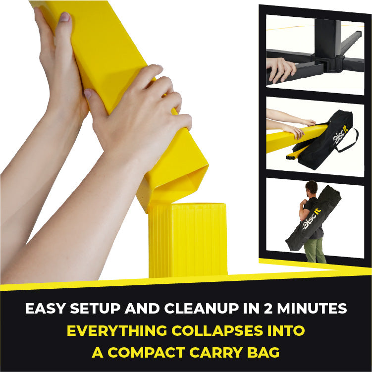 Take your yard games to the next level with Disc It! Perfect for 4–10 players, this fast-paced, high-energy disc game brings teamwork, strategy, and nonstop fun. Whether you’re playing on sand, grass, turf, a basketball gym or any flat surface, Disc It sets up in 2 minutes and keeps the excitement going for hours.