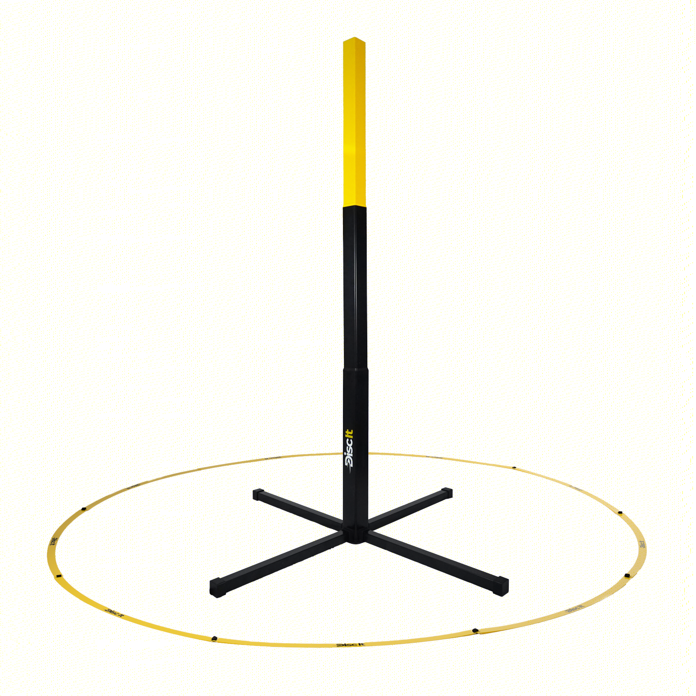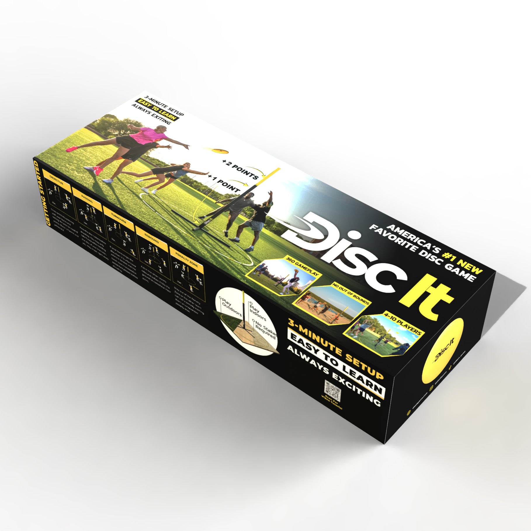 Disc It is the world's first team disc game to combine fast-paced action with strategic gameplay. Two teams compete to hit a color-coded pole with a flying disc to score points, all while navigating penalty zones and engaging in interceptions, rebounds, and turnovers. The gameplay is a continuous flow of offense and defense, offering a thrilling challenge for beginners and seasoned athletes alike.